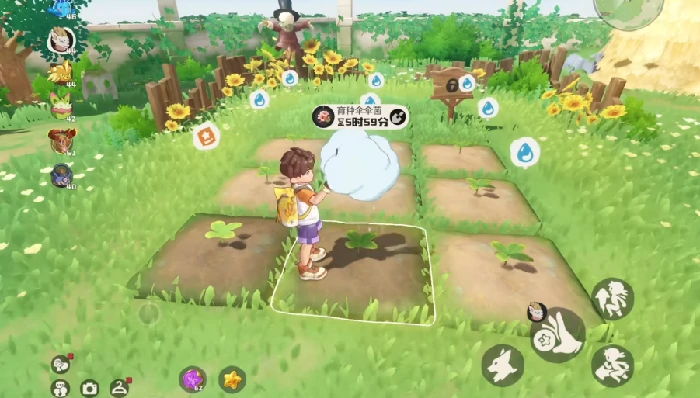 浇水有两种方式:召唤水系宠物,用专属技能与农田互动;访问好友农场协助浇水,加速作物生长并提升双方好感度。