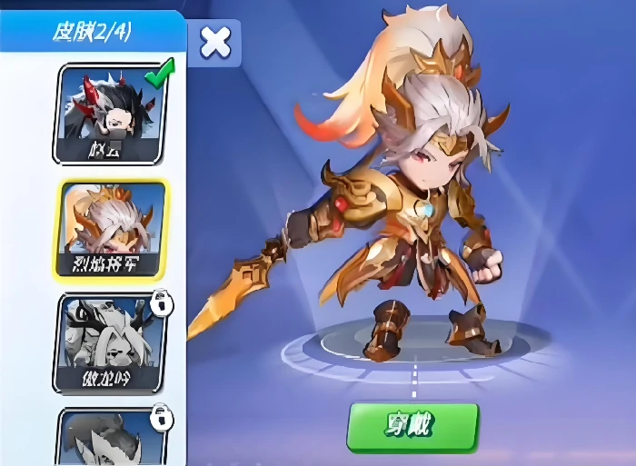 赵云SR英雄用灌篮军团烈焰将军皮肤,提升外观实战。造型为火焰战甲、燃烧长枪,技能有全新火焰特效。