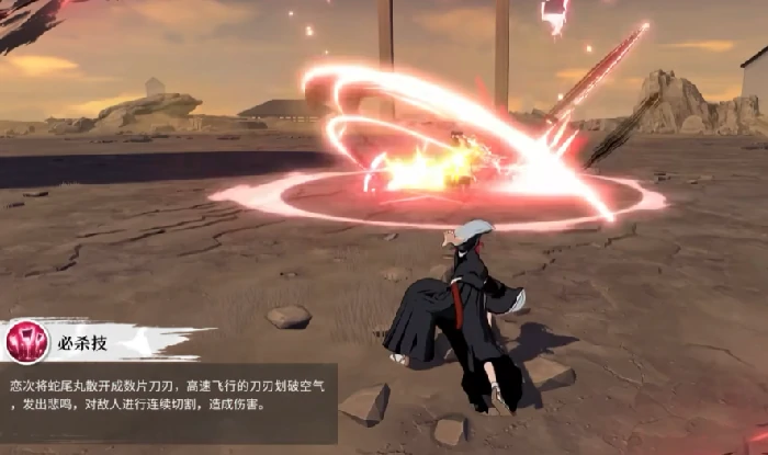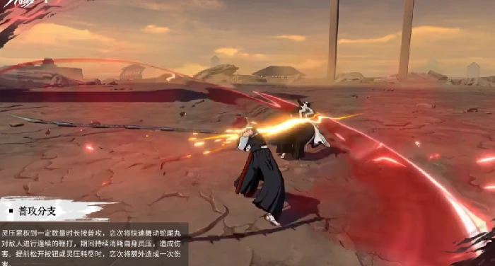 五段挥砍蛇尾丸,持续积攒灵压。目标怯懦时,灵压翻倍增长。灵压充足,长按普攻发动连续鞭打(消耗灵压),按需松键中断。