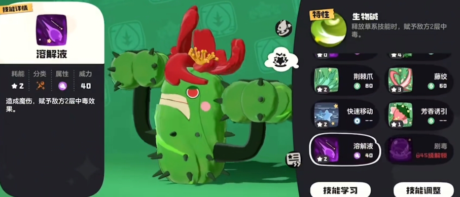 翡翠水母的技能目前来看,主要是以毒系和水系为主,具有多种不同的效果,如中毒、混乱和降低对手属性等都只是其中之一,其技能方面的组合让得它能够在战斗中更加的灵活,适应多种不同的战斗环境,大家到时候可去根据自身的需要来进行选择,此外它非常适合在水或者是毒系的队伍中进行使用哦,如此也能让它的效果最大化。