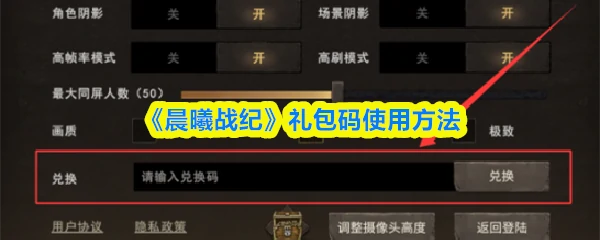 领取游戏奖励:进入设置界面,使用兑换功能,输入礼包码。