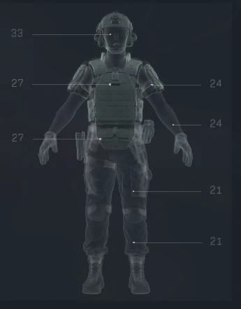 基础伤害27点,受四肢减伤影响,第一段射程需4发(240ms TTK)或5发(321ms TTK)击倒目标。