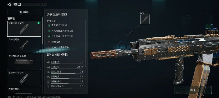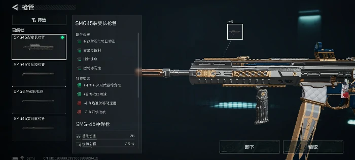枪管:换SMG45裂变长枪管→无负面强化性能→追加稳定性
