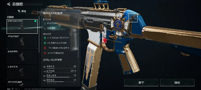 后握把:搭模块化AR后握把+AR重型握把片→轻微降速可忽略→强化操控基底