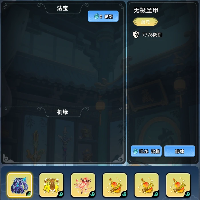 1. 无极圣甲+2. 天魔羽衣——双甲叠加,狂堆防御法抗;