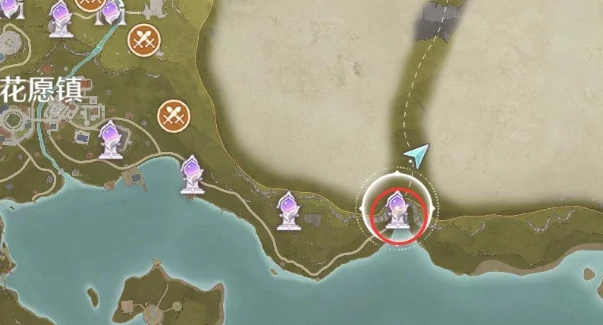1、传送至祈愿森林左下角「心愿通行许可」传送点,参照下图定位
