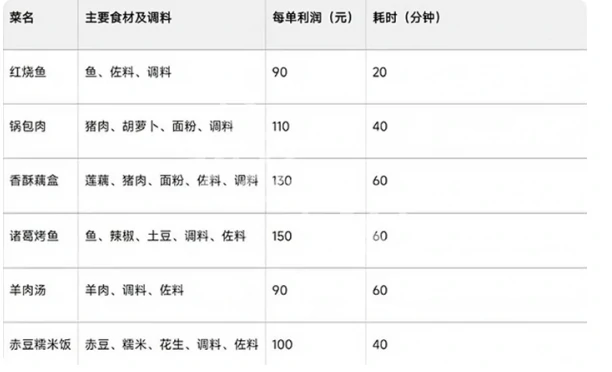 2.诸葛烤鱼单产150利润,耗时60分钟;同耗时香酥藕盒仅130,单局多赚20。