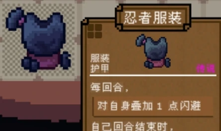 侧重于每回合持续效果,如青铜胸甲、束腰外衣和忍者服装等。忍者服装紫色品质,备受玩家推崇。显著提升闪避速度,移除全部格挡效果,回合结束后自动清除自身格挡状态,适合高机动打法,有效弥补灵活性不足问题。