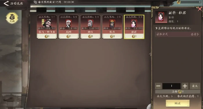 活动商店鲍信、张燕、杜若等武将,副将寻访能常规获取或刷碎片,别在这换。
