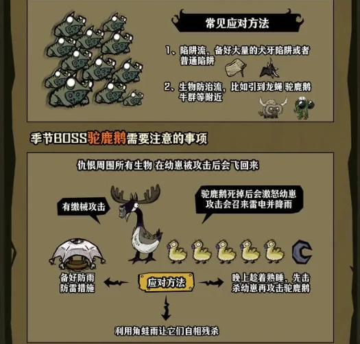 密切关注季节首领驼鹿鹅,掌握其出现规律与行为机制。