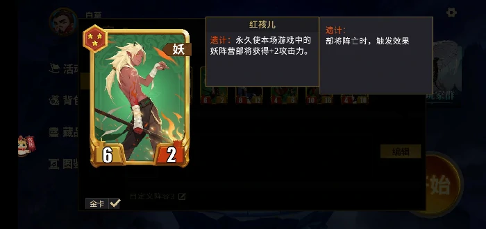 低本召唤单位换牛魔王放一号位,卖掉一个红孩儿后上牛魔王或针对性功能卡,无合适卡牌宁可空位不占格子。