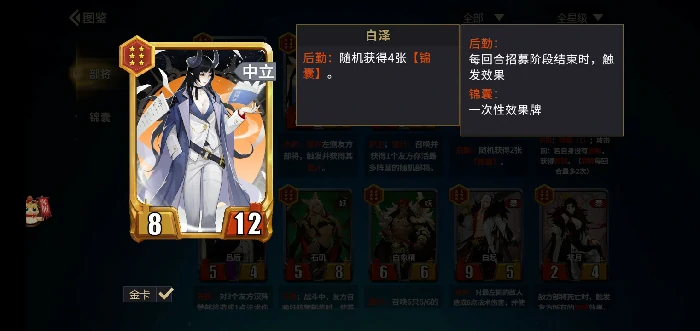 先上能培养后排的卡牌,如提供锦囊卡的白泽或白骨夫人。