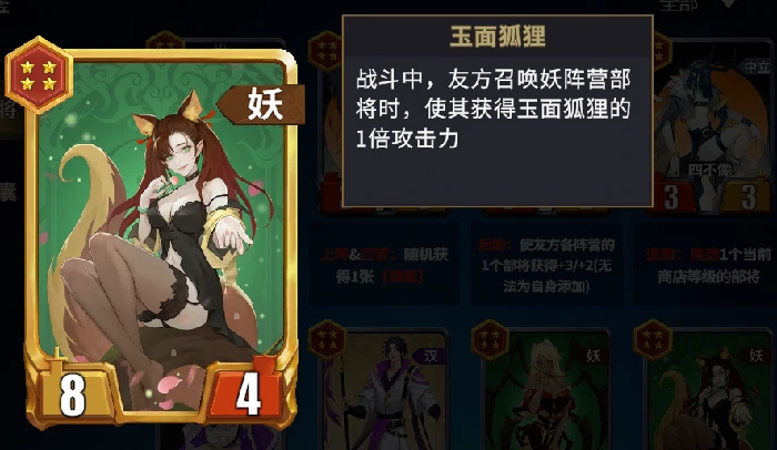 玉面公主:为召唤单位提供攻击增益,提高阵容上限。