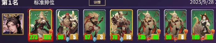 前排:一号位放守卫相柳(针对白起、霍去病,节省位置),白象精至少上一个,可选金卡银角、牛魔王(收益期望接近)。
