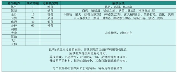 1、非付费玩家平衡境界与葫芦等级资源分配,避免一项过高另一项不足,捕捉宠物需两者同时达标,均衡发展。