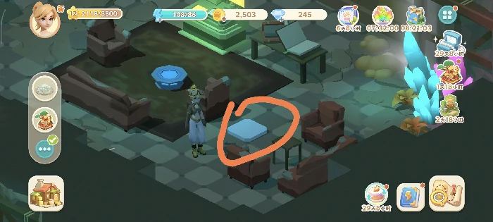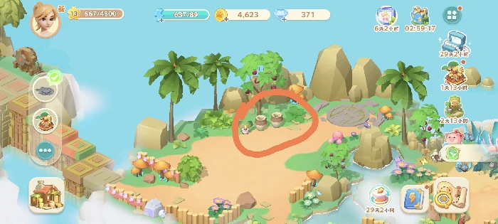 拾蘑菇(土著区、潮汐岛也有)→ 熬蘑菇汤回体力+换木材