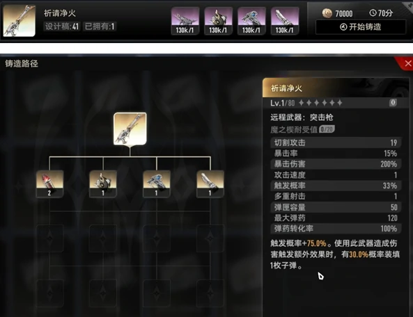 3、集齐所有材料与图纸后,在锻造台进行最终合成,获得武器。