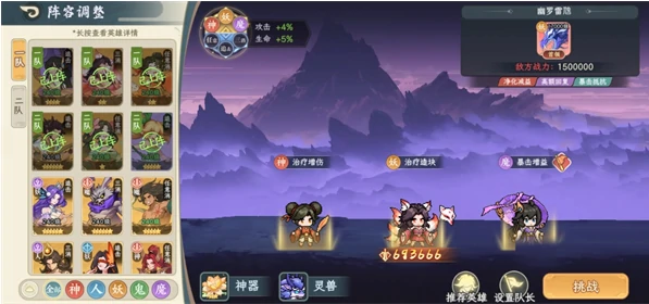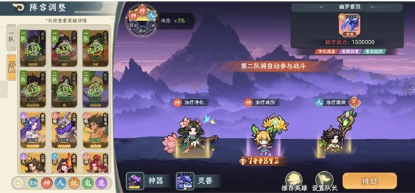 神器选择:必备锤子,优先带锤子和莲花;治疗量高的队伍用锤子;词条优的凤凰可带幡补伤害。