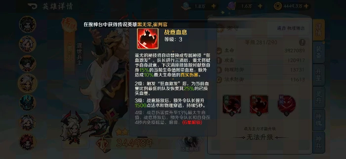 推荐上阵蚩尤,第二天登录送一星。秘技一级给全体队友20%吸血,二级解锁全场攻击增益,资源够就升满,最大化辅助效益。