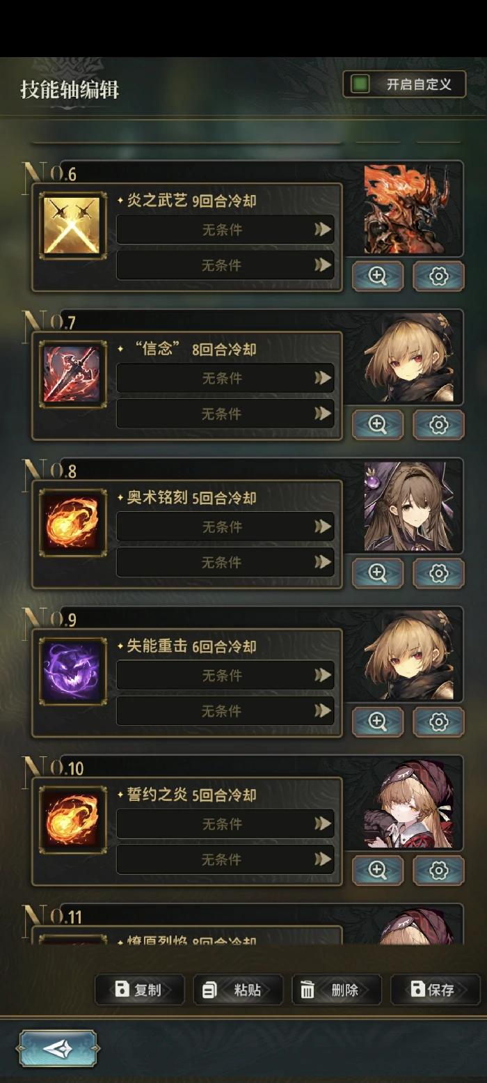 操作提示:按角色站位设技能条件,规避奥义能量判断误差,防止技能错乱