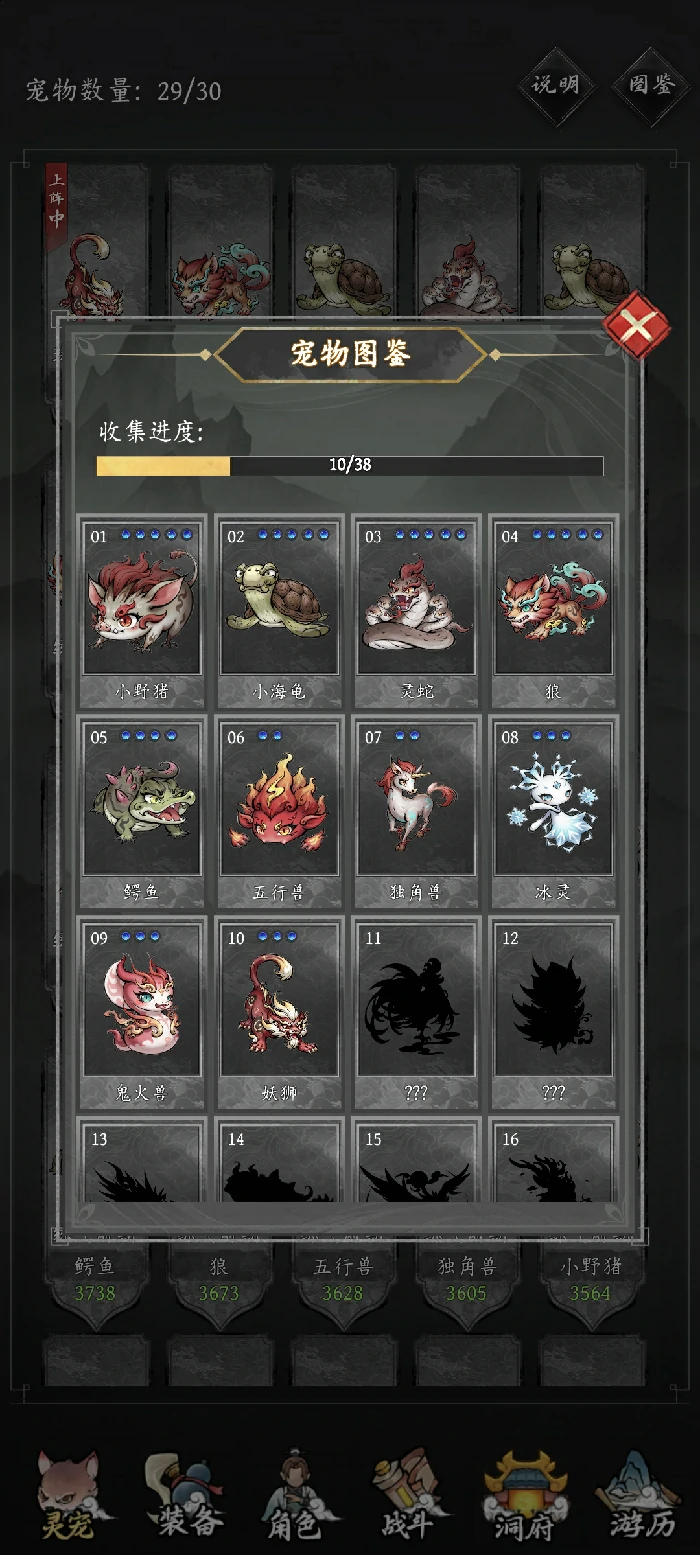 四、资质提升找对宠,攻击用高资质乌龟垫,防御血量参照图鉴上限。前期少砸资源,先开技能格再升资质