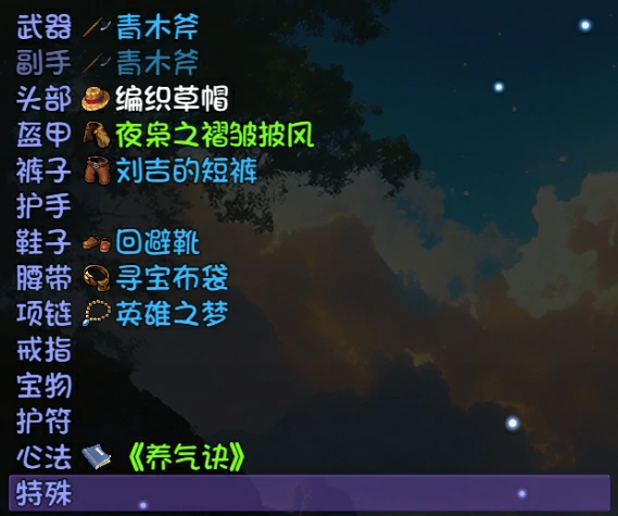 山贼匿藏点:做罗雨任务,拿清风吐纳术、狂风斧法、青木斧、英雄之梦。开地图右上角箱子得暖阳呼吸法。