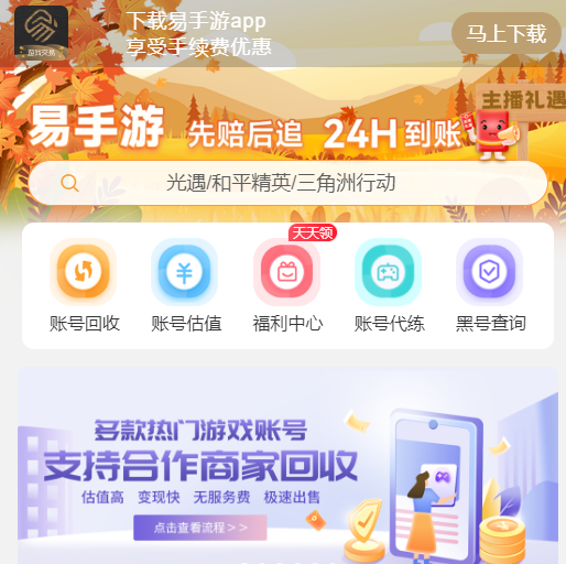 易手游是专注手机游戏交易的服务平台,特色在于构建了完善交易保障体系与丰富资源覆盖。交易安全方面提供找回包赔、实名认证及支付宝担保;资源覆盖8000多款热门手游,品类多样;交易体验便捷,账号交易无服务费,承诺20分钟内极速发货,有强大筛选功能,还提供7*24小时客服及免费账号估值服务。