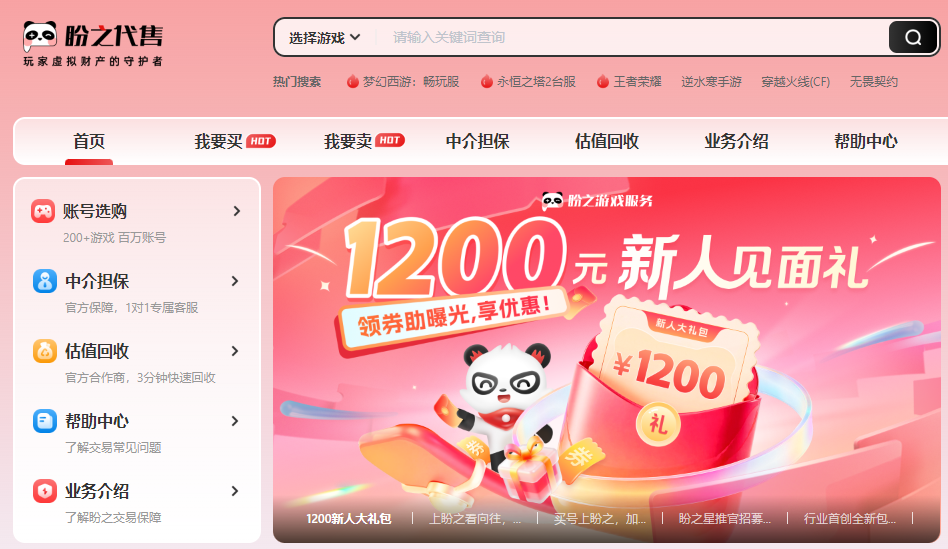 盼之代售成立于2017年,是4000多万用户选择的专业游戏账号交易平台,以“使账号交易更安全”为理念,日安全交易量超千笔,累计超百万笔。核心特色是全方位安全保障体系,首创找回包赔服务,买家支付号款10%即可获保障,还有严格账号审核、实名认证、验货担保等措施。业务覆盖游戏账号代售、担保中介等,支持多品类游戏,日更新账号50万+,独特服务优势包括买号终身包赔、卖号资金当天到账等。