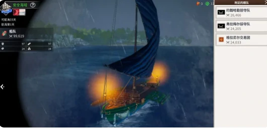 航海时,视野见其他船只,点进入观察模式,看敌方舰队战力数据和我方物资。别盲目进攻,先对比敌我数值和续航能力。实力差距大?先交流,或绕行避开;实力接近,点战斗立即宣战。同一海域多支舰队?用快捷菜单调整名录管理。