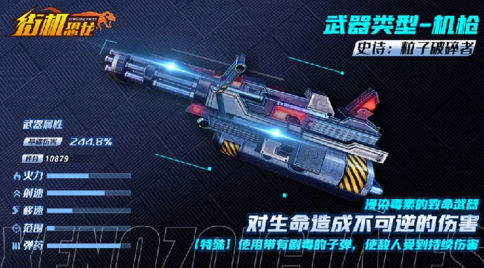 粒子破碎者属枪械类,适配远程输出角色。基础攻击+毒性持续伤害,双重打击敌人。收集材料强化武器,提升整体战力。