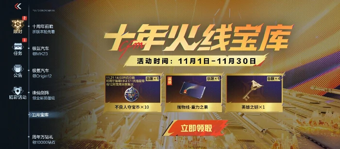 参与常规对战完成指定任务积累夺宝次数,活动难度低,每日上线玩几局稳步推进进度,达成目标获金币和经验加成卡,快速提升账号实力。