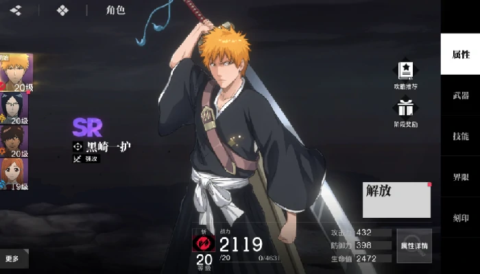 境界刀鸣主角黑崎一护,斩系强攻定位,新手首选。普攻四段,前二单体、后二范围,攒灵压。