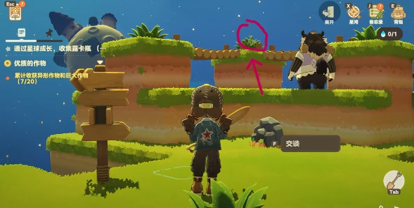 新玩家进入游戏,背包初始为空。系统通过进度条提示:多探索、多收集。打开备忘录,接取累计收获20个异型作物任务。除昆虫外,留意其他特殊物品。游戏初期交汇区域虽无明确指引,但隐藏移动螳螂、可互动NPC等内容。