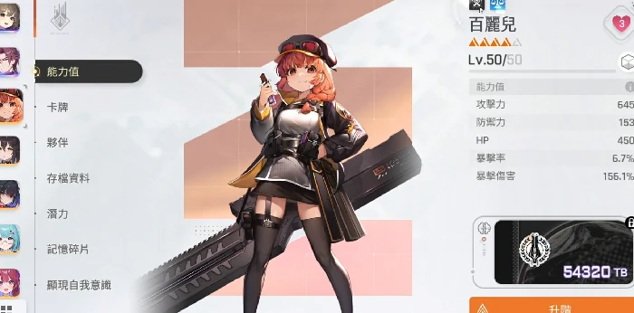 剧情中年轻晋升指挥官,战术素养优秀。战斗中前期叠加增益,后期靠保留、预留机制爆发高额伤害。升级后解锁暴击伤害提升、暴击率增加、特定卡牌强化等效果,进一步增强输出。