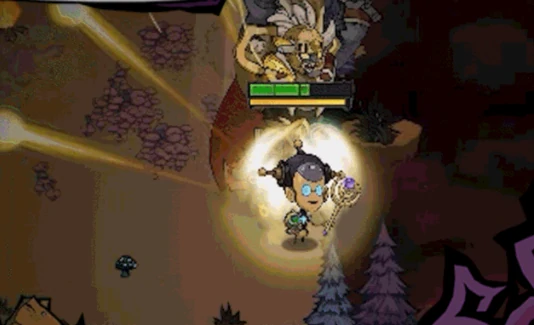 弧光返魂镖——发动时脚下浮现紫光,投出回旋镖,命中玩家短暂定身,回旋镖返回造成二次伤害,发现地面紫光需迅速移动规避连续受击。