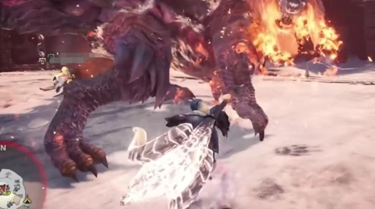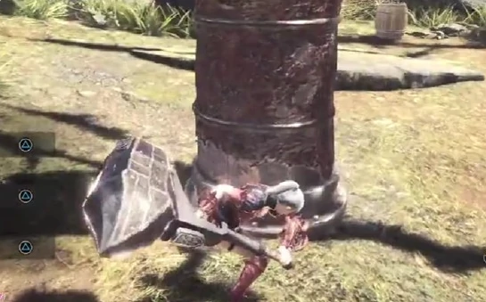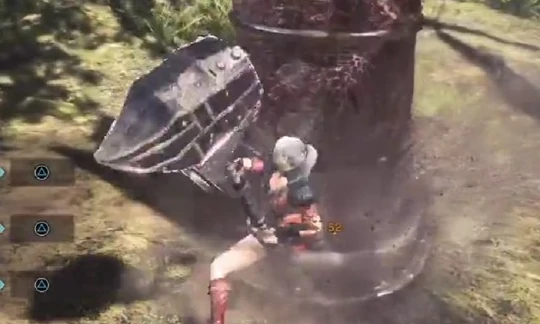 怪物倒地,看倒地时间选输出。时间够就放完整高段连招,打爆发伤害。大锤是打击类武器,有眩晕积累机制,打头部攒眩晕值,满了怪物短暂僵直。状态持续短,但多人配合有战术意义。