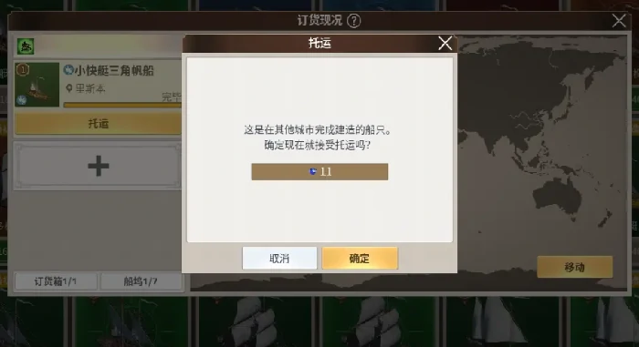 造船厂前期即可建成。建成后启动船只制造。往返港口不便时,商城购买远程建造礼包,有效期内随时随地发起建造。新建船只支持委托运送,直接发送至指定港口,节省时间。