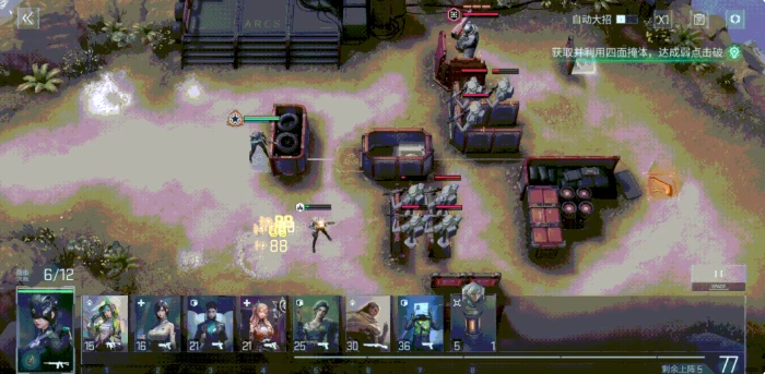 站位策略:输出后置掩体,伺机绕后夹击,扩大战场视野。角色挑选:优先高生命值、高防御属性,承担大量伤害。