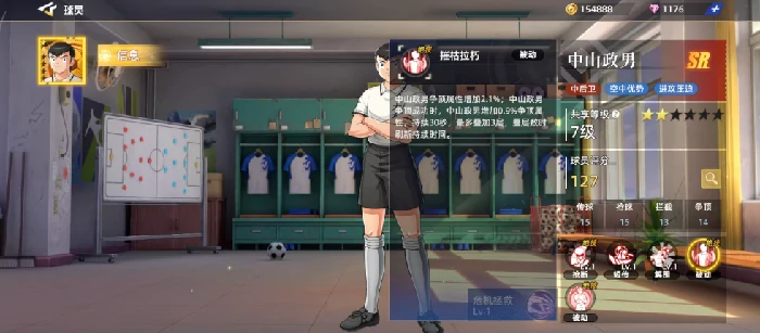 队长小翼王牌对决中山政男解析:SR中后卫,还原原著防守风格,综合评分127,属性均衡无短板。