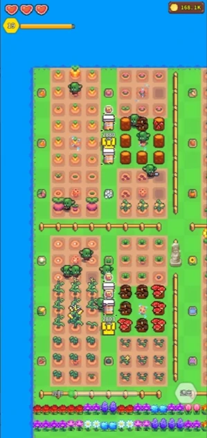 横向/纵向排列不准确,因哥布林AI问题,左上与右下作物同时成熟时,哥布林会先采左上、再采右下、返回左上种植,路径效率低。