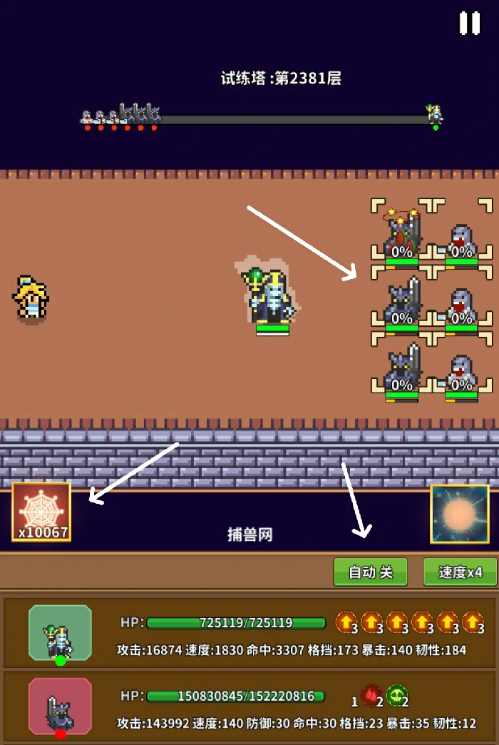 5. 挑战试炼塔前准备大量捕兽网,应对容易卡关的石头人关卡