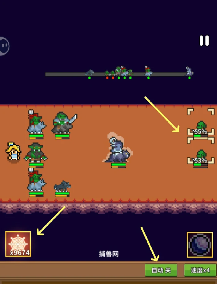 捕兽网用法:关自动战斗→点左侧捕兽网图标→选目标精灵(成功率和目标当前血量损失百分比有关)。