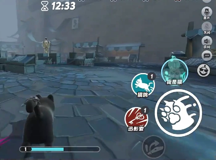 主动技能迅影索:长按选方向发射,命中障碍物触发牵引,带动快速位移。飞行中松键释放衍生技能掠影,脱离影索靠惯性滑行,落地无硬直不跌落。黑猫形态遇高墙自动衔接攀爬,保持移动连贯。