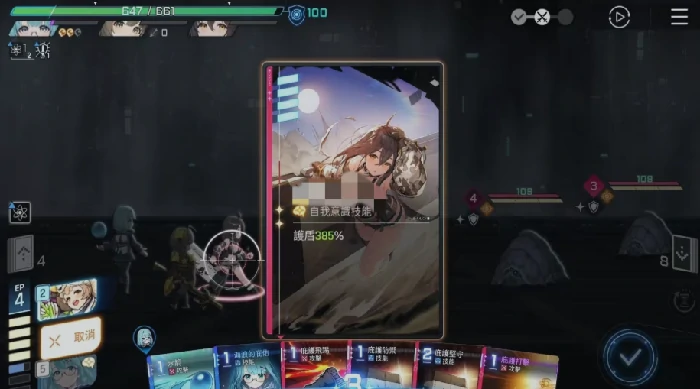 初始四张基础卡牌:庇护防御(低费开盾)、庇护坚守(2费高护盾量,关键时刻用)、意志的冲刺(防御伤敌,附加反击状态)、庇护飞踢(伤害随防御值提升)。技能支撑防守反击阵容。