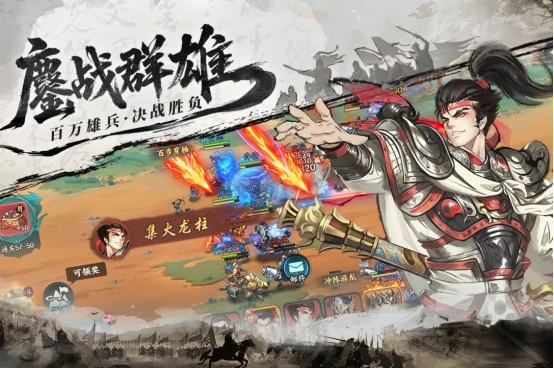 国漫画风打造沉浸三国世界,核心聚焦实时国家对抗。辽阔战场地图任你驰骋,培养曹操、关羽等数百经典武将,解锁独特技能,规划专属成长路径。灵活调整出战阵容,自由组合战术策略,投身群雄逐鹿、官渡之战等著名战役,扭转战局,捍卫领土,争夺中原霸主,成就帝王伟业。