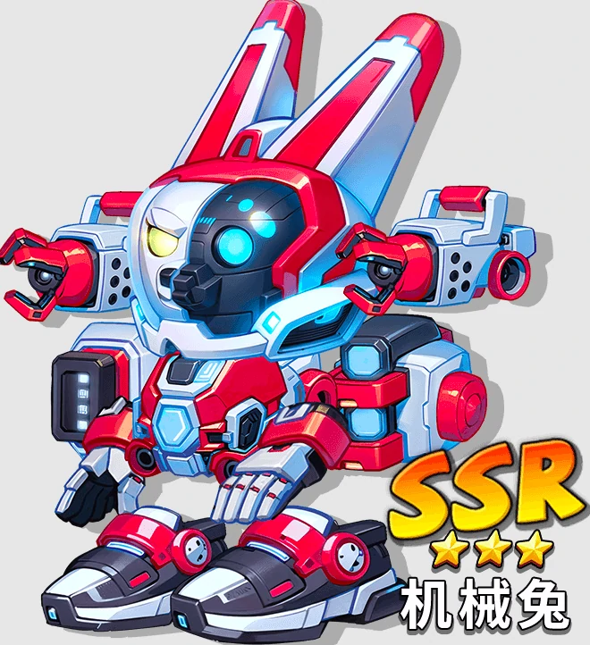 2. 机械兔:主动技能机械钩爪适配远程操作,启动高速模式拦截传球,短时间夺回球权,稳固防守盲区。凭高机动性突破防线,协助队友反击,担当反击核心。