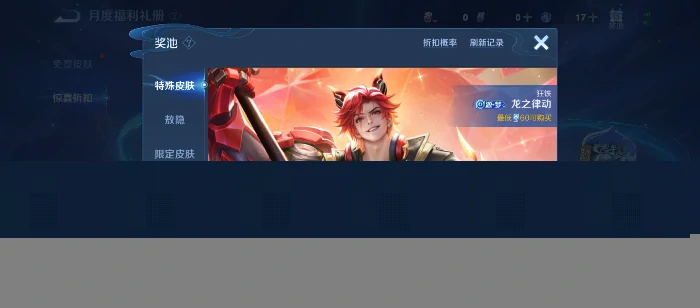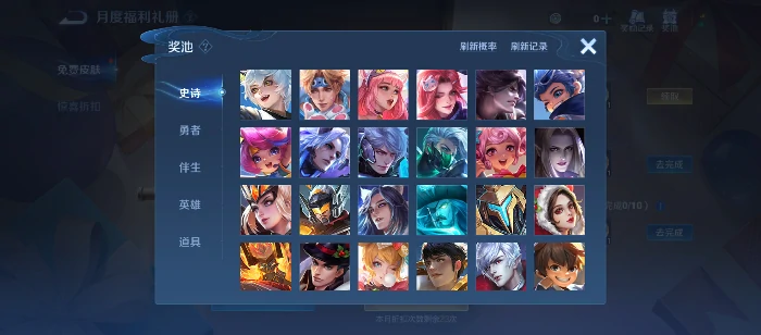 保底机制生效:累计刷新120次,必得未拥有史诗皮肤;刷到已拥有勇者皮肤,自动转换4张积分夺宝抵用券,积累兑换荣耀水晶。10月活动已结束,刷新次数继承,货币资源不保留。
