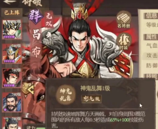 吕布是主力输出,怒气技能常规群体攻击,强在被动——敌人麻痹就发动精准打击,造成巨额伤害。麻痹状态常触发,吕布能靠这机制爆发输出,成队伍最重要伤害来源。