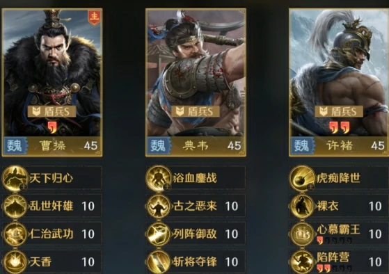 虎卫反击盾阵容搭配思路如上,对配置有要求,凭典韦许褚强势反击、曹操全面辅助,多数战斗发挥出色。最大化威力需注重武将技能互补,合理运用兵法战术。