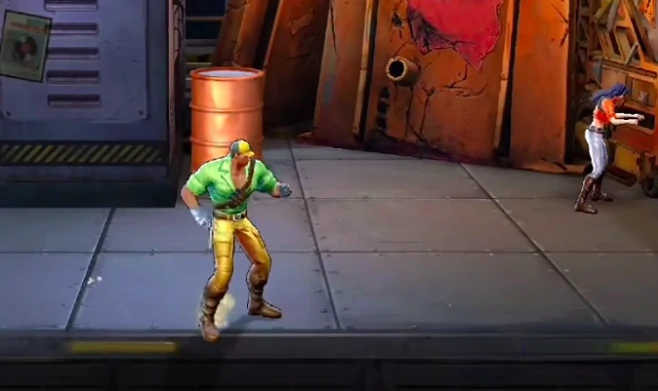 第一关跟随新手教程操作,轻松通过。第二关选黄帽穆斯塔法,战前调画质辨攻击。签雇佣兵协议开BOSS战,用连招清场,引爆右上角汽油桶灭小兵,赤手战胖老头触发爆裂技能。